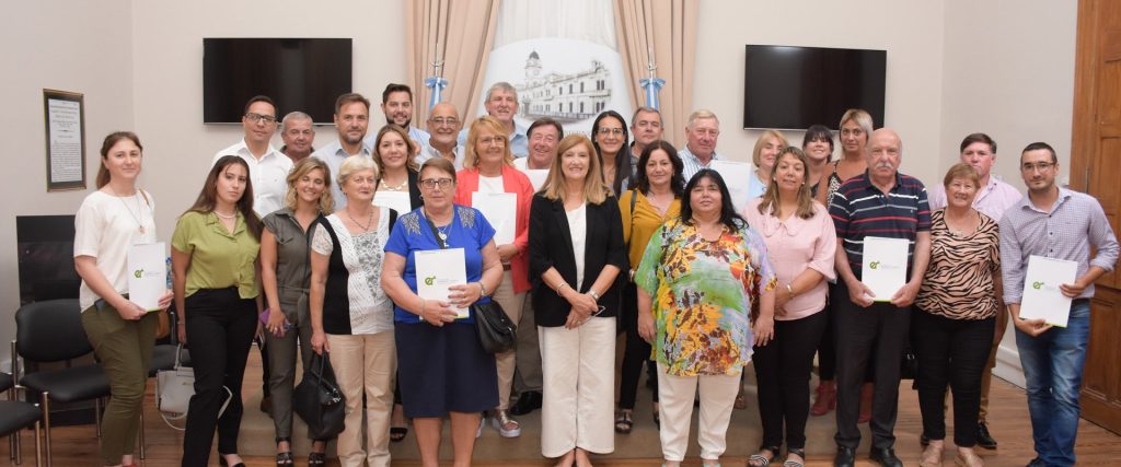 La ministra de Gobierno y Justicia, Rosario Romero, presidió este jueves la entrega de aportes desarrollada en la Sala de Periodistas de Casa de Gobierno. Un total de 16 entidades recibieron fondos destinados a reforzar la labor diaria en la comunidad.