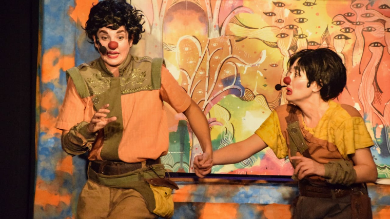 Serán dos payasas las que a partir de este relato invitarán a preguntarse cómo vuela la imaginación cuando se tiene miedo, con historias que el viento alguna vez les contó al oído.