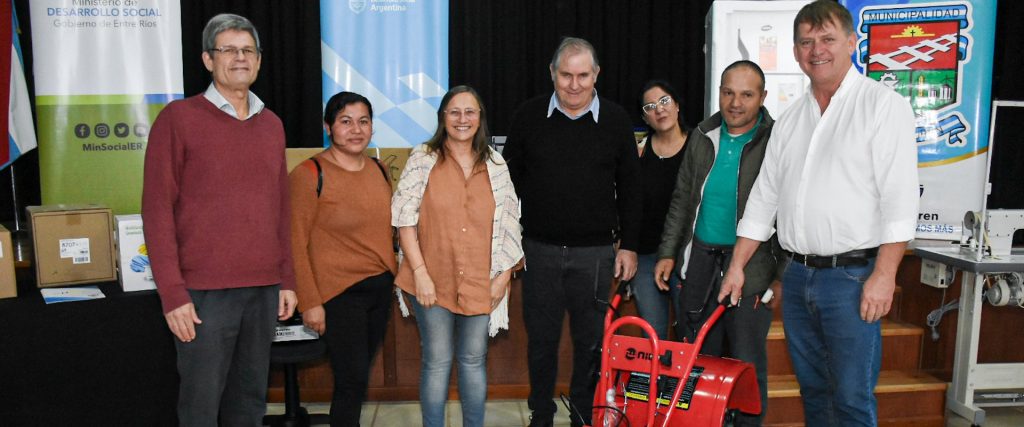 Pertenecen a la Economía Social de Aranguren y Hernández recibieron herramientas del Programa Banco de Maquinarias, Herramientas y Materiales,en encuentros que compartieron con la ministra de Desarrollo Social, Marisa Paira, y los intendentes Luis horacio Siebenlist y Luis Gaioli.