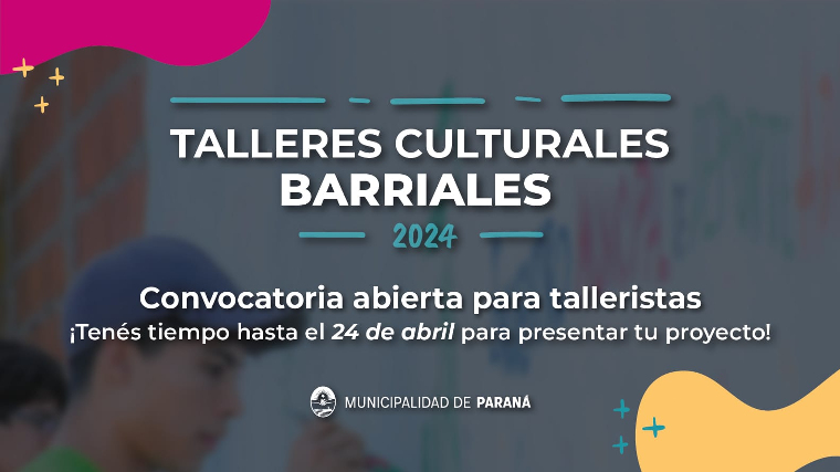 Los talleres se desarrollarán de mayo a noviembre de 2024, en diferentes espacios físicos barriales. Las personas seleccionadas recibirán un aporte económico y su coordinación depende de la Subsecretaría de Cultura.