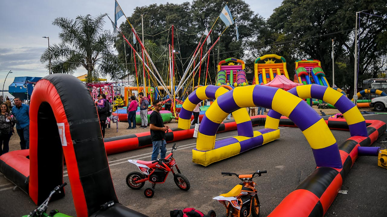 El espacio de juegos está en la costanera, lindante a la feria de emprendedores y artesanos, frente a la Sala Mayo. La propuesta incluye atracciones para toda la familia.