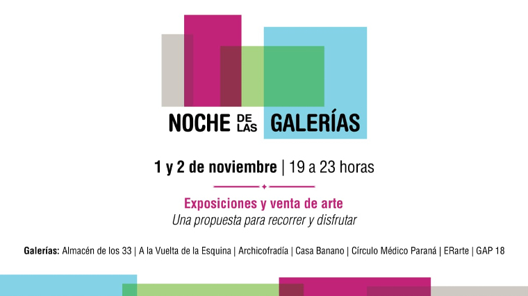 Las galerías de arte de Paraná abrirán sus puertas para que los vecinos recorran salas con exposiciones, venta de obras, música y gastronomía. El evento se llevará a cabo el 1 y 2 de noviembre, entre las 19 y las 23. Es organizado por las galerías en conjunto con la Municipalidad de Paraná.