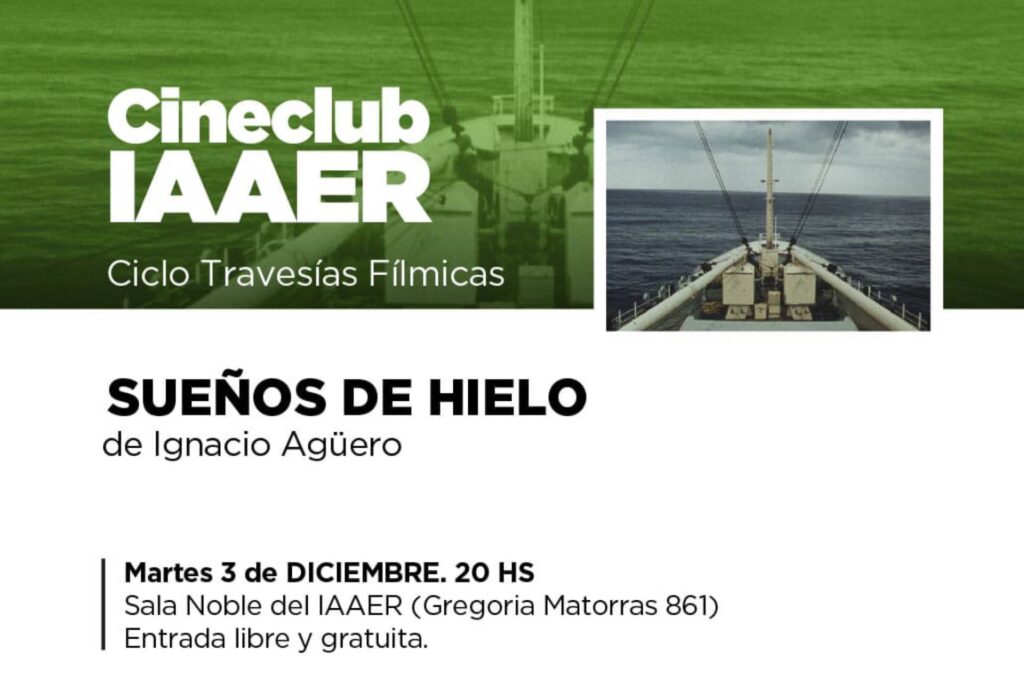 La función que fuera reprogramada por cuestiones climáticas, se concretará este martes 3 de diciembre a las 20 con la presentación del título Sueños de Hielo (1993), un documental dirigido por el director chileno Ignacio Agüero. La invitación es en la Sala Rubén Noble (Gregoria Matorras 861- Paraná), con entrada libre y gratuita.