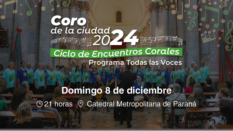 Será este domingo 8 de diciembre a partir de las 21, dentro del último encuentro coral del año y con entrada libre y gratuita. Además, actuarán otras agrupaciones. Organiza la Municipalidad.