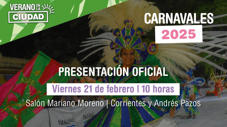 Serán del 28 de febrero al 3 de marzo y la presentación oficial se realizará este viernes 21 de febrero a las 20 en el Salón Mariano Moreno (Corrientes y Andrés Pazos). El evento es organizado por la Municipalidad y la Red de Artistas del Carnaval Paranaense.