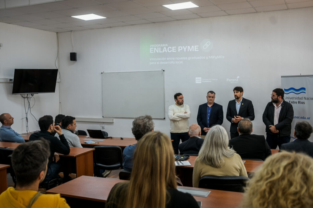 En el auditorio de la Facultad de Ciencias Económicas (FCECO) de la Universidad Nacional de Entre Ríos (UNER), se presentó “Enlace Pyme”, un esfuerzo conjunto para fortalecer el tejido productivo de Paraná, ofreciendo a los graduados la oportunidad de aplicar sus conocimientos en un entorno real y contribuir al crecimiento de los emprendimientos locales.