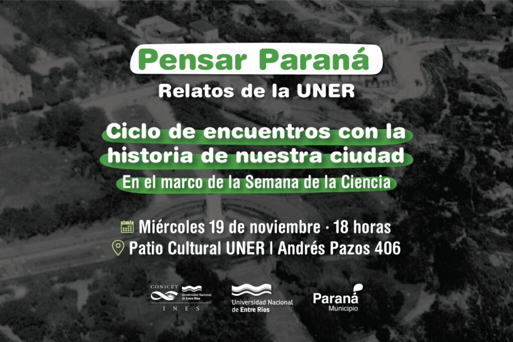 El ciclo Pensar Paraná forma parte del trabajo conjunto entre la Municipalidad, la UNER y el INES CONICET-UNER para acercar la producción científica local a la ciudadanía y promover espacios de reflexión sobre la historia y el presente de la ciudad.