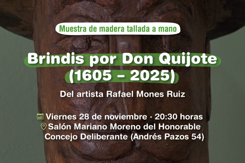 Será en el Salón Mariano Moreno del Concejo Deliberante de Paraná (Corrientes y Andrés Pazos), el viernes 28 de noviembre a las 20.30 hs. Está compuesta por doce esculturas talladas en madera en homenaje a la primera publicación de “El ingenioso hidalgo Don Quijote de la Mancha”, de Miguel de Cervantes Saavedra.
