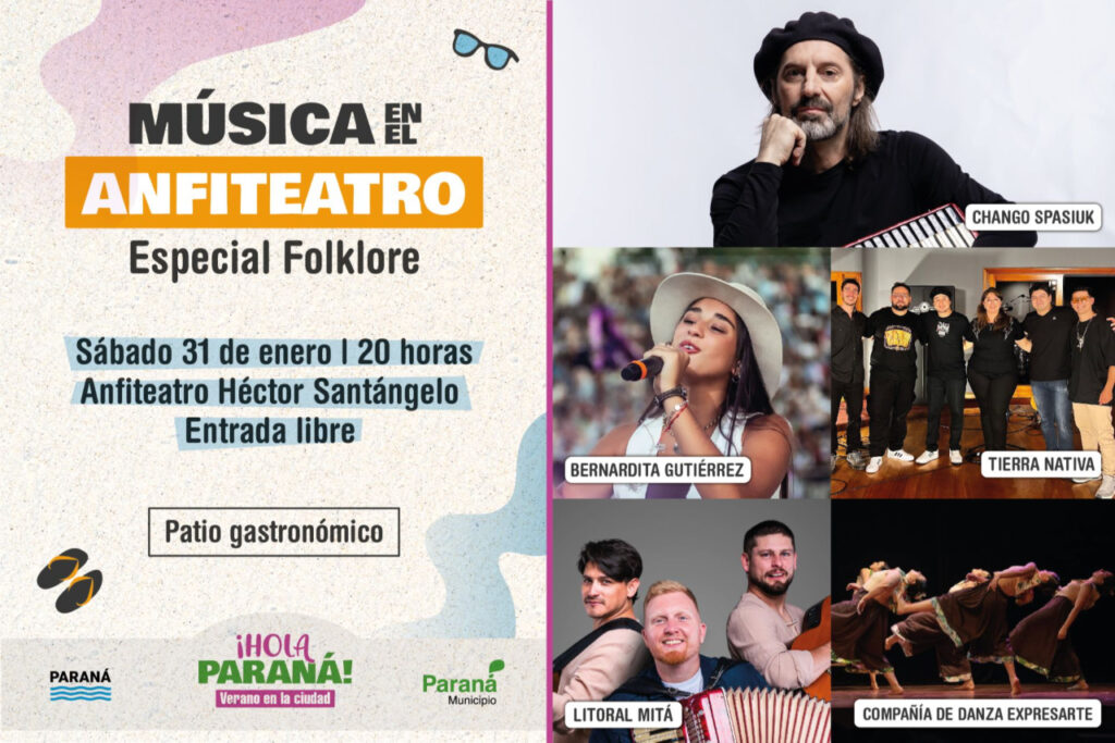 Este sábado 31 de enero, desde las 20 horas, se presentarán también los espectáculos musicales de Tierra Nativa, Litoral Mitá, la Compañía de Danza Expresarte y Bernardita Gutiérrez. El Anfiteatro Héctor Santángelo será el escenario de la última jornada del ciclo cultural de la Municipalidad, con entrada libre. Habrá patio gastronómico.