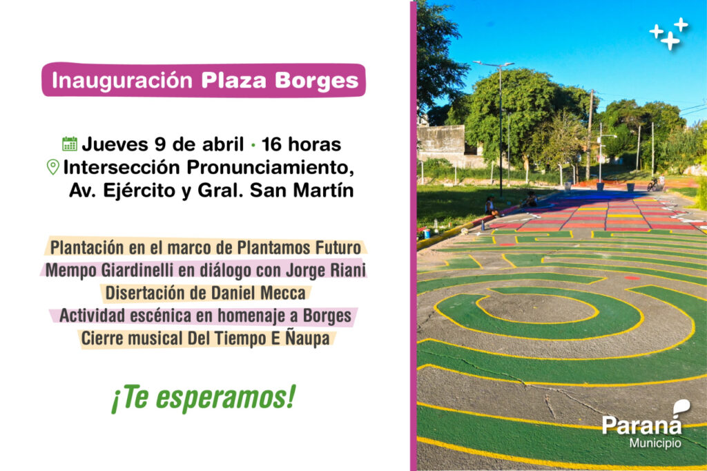 La Municipalidad de Paraná llevará adelante la inauguración oficial de la plaza Borges, un nuevo espacio público que se recupera para fortalecer el encuentro, la participación y el acceso a propuestas culturales en la ciudad.